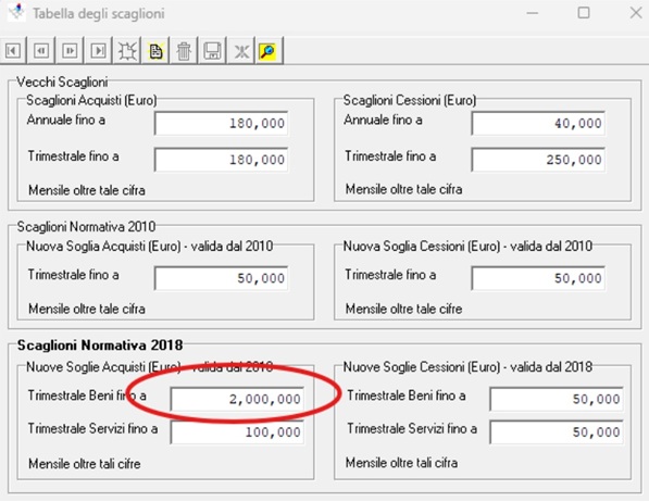 Per far in modo che il programma consideri la nuova soglia, dovrà essere aggiornata la tabella degli scaglioni raggiungibile dal menù ‘Tabelle -> Tabella Scaglioni’:
